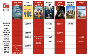 | Lundi | Mardi | Mercredi | Jeudi | Vendredi | Samedi | Dimanche |