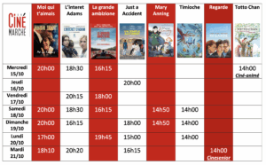 Tous les films programmés par l’asbl Cinémarche au CineXtra de Marche du 15/10 au 21/10 inclus
