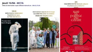 Exposition en accès libre du lundi au vendredi de 9h à 17h, les samedis 18/04, 30/05 et 06/06 de 9h30 à 12h30 et à l’occasion des spectacles. Fermé les 01, 14, 15 et 25/05/2026.